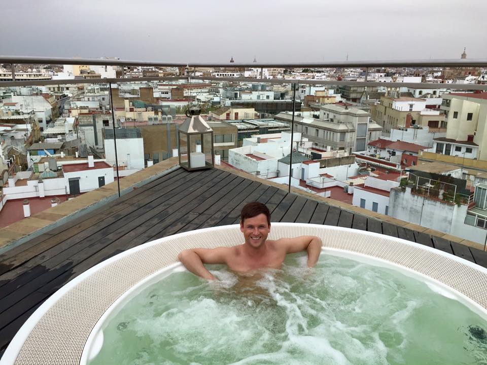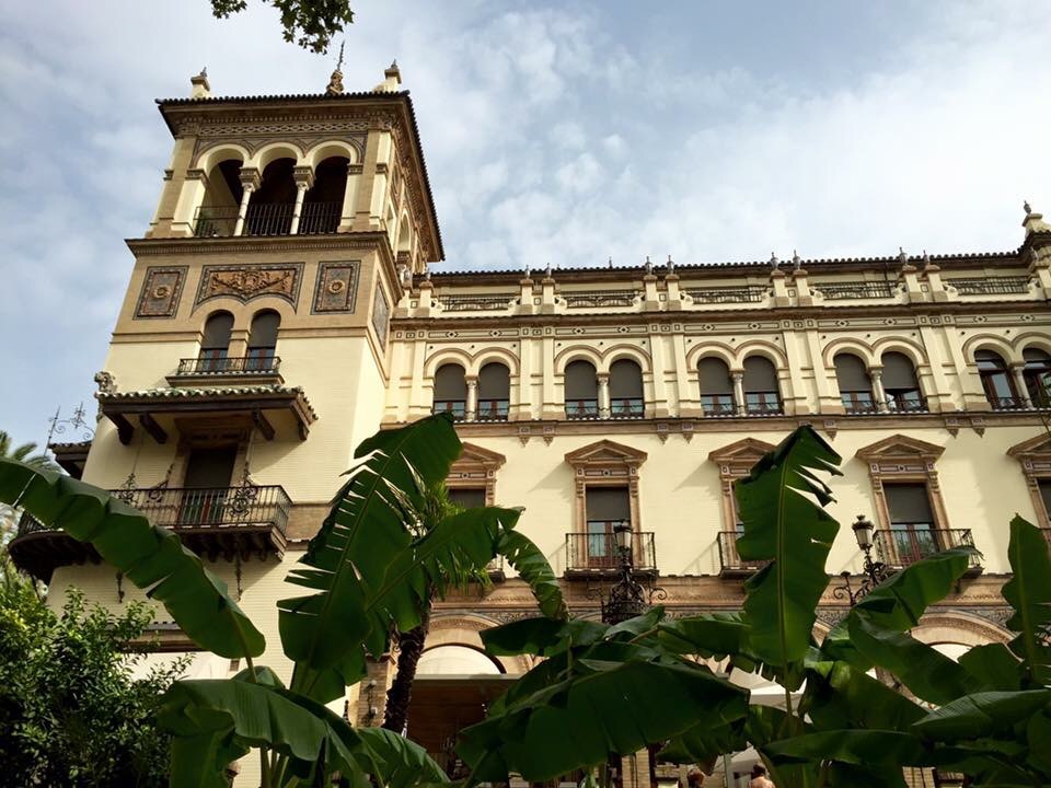 #GranMeliaColon Our hotel, The Gran Melia Colon was a beautiful building located minutes from the river and a casual 10 minute stroll into the historic centre. Opened in 1929 the hotel is one of the most emblematic buildings in the city, it has gone through many changes in its time but it still highly regarded as an important part of sevilla’s history. The building is now a listed monument and still manages to display its original neoclassical façade. When you arrive through the doors you are immediately greeted by staff who take your bags and walk you to check in. As you walk in, the main hotel area is exceptional, with its beautiful central dome, the endless marble flooring, sweeping stairways and the pop of gorgeous red from the contemporary stylish seating. At check-in we were offered a glass of champagne and as we had booked the red level service we were introduced to our very own red level member of staff. She showed us to our room, provided us with lots of information and if we needed anything we could contact her directly by phone. Each floor is dedicated to a specific Spanish artist and on each room door was a different painting belonging to that artist. As a red level member we had access to a private lounge where you could help yourself to endless tapas, desserts and drinks. The spa area of the hotel was located on the top floor and included a steam room, sauna and an amazing Jacuzzi and sunbed area with an uninterrupted panoramic view of the city. I would definitely recommend this hotel for its amazing customer service, cleanliness and beautiful décor.