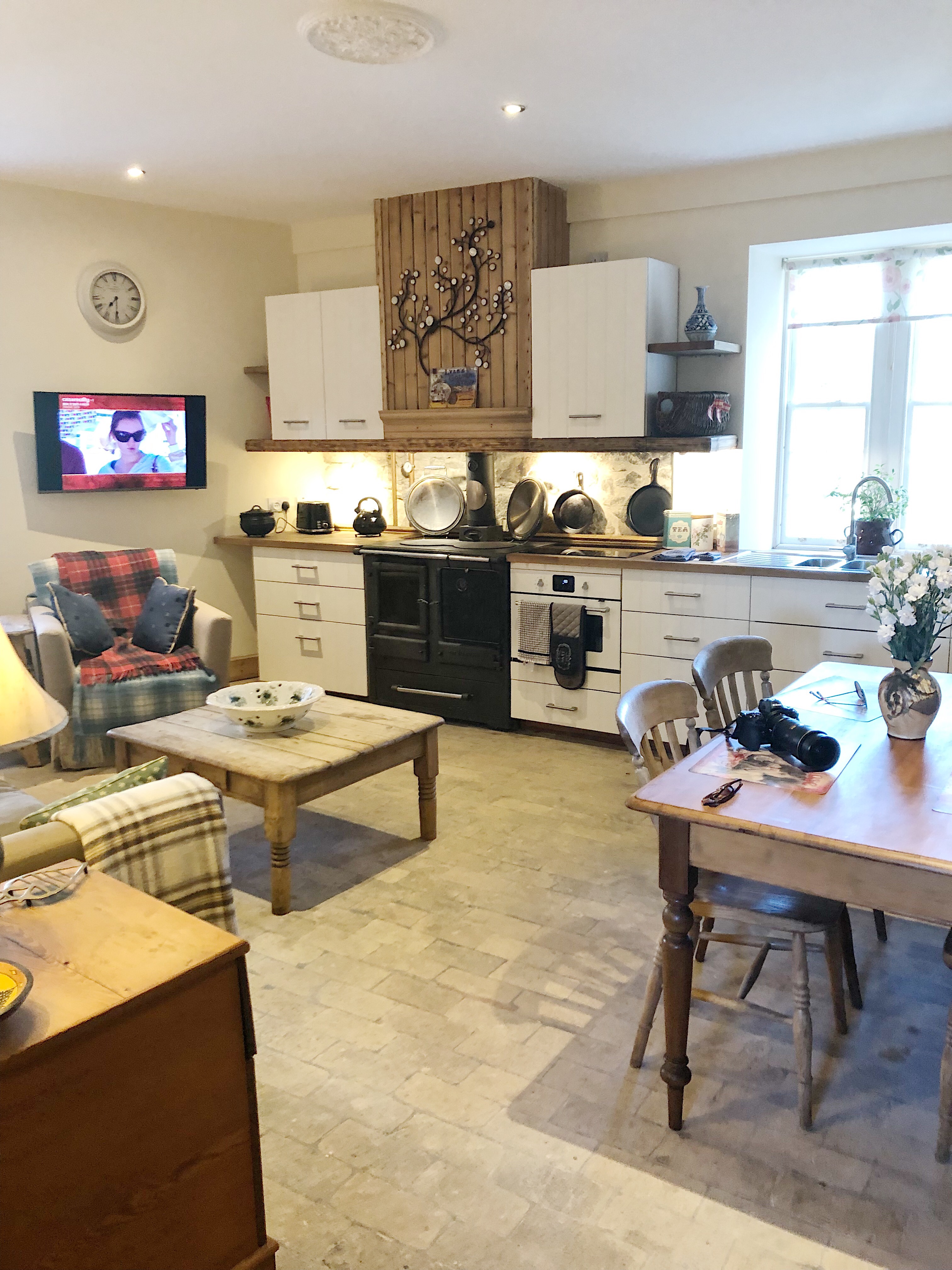The room was adorned with antique furniture which fitted the room perfectly and the kitchen had a traditional stove perfect for lighting a fire and warming up the space.