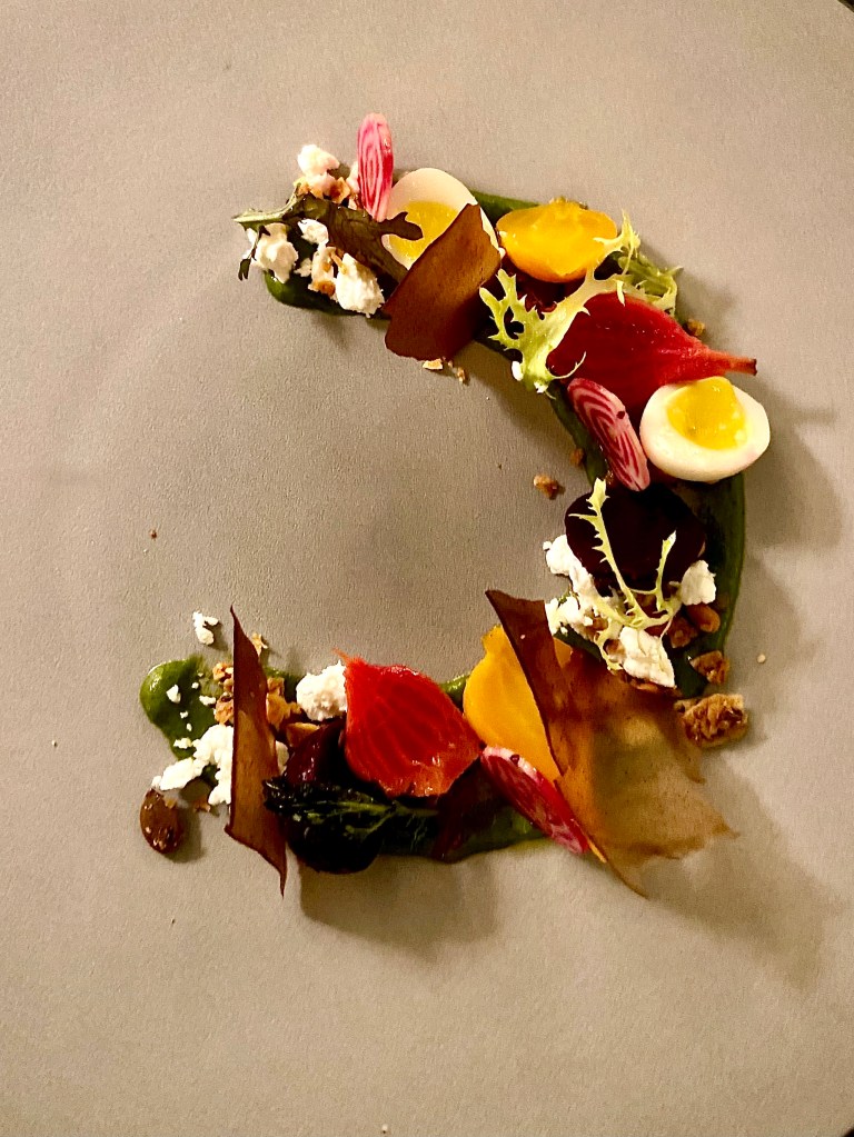 After an uplifting glass of Rose Moet, whilst listening to the tranquil notes from the live piano, it was time for the starter. For the first course, I decided on a fresh Baby Beetroot Salad. The dish was beautifully presented in a crescent manner, delicately garnished with a delicious scattering of creamy goat’s cheese and perfectly cooked quail eggs. The beetroot was thinly sliced and was sweet and crunchy, this sweetness was counteracted with the herbaceous flavours of the lovage pesto. The starter was superbly balanced with flavour and this along with its array of textures and vibrant colours made it the perfect light dish, to begin with.