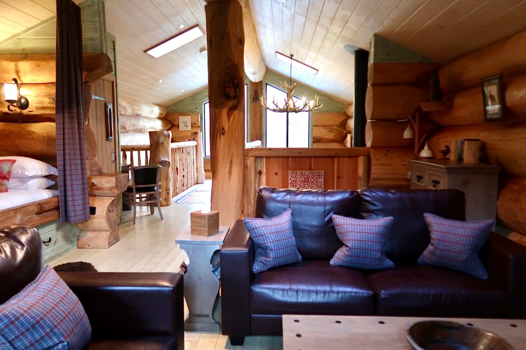 As you wander through into the living quarters, it is here where you see the gravity of craftsmanship that has gone into this place. Each of the cabins is made using Western Red Cedar known for its highly durable and robust properties. You can see the entire tree trunk running through the cabin, each one with its unique markings, colouring and texture.