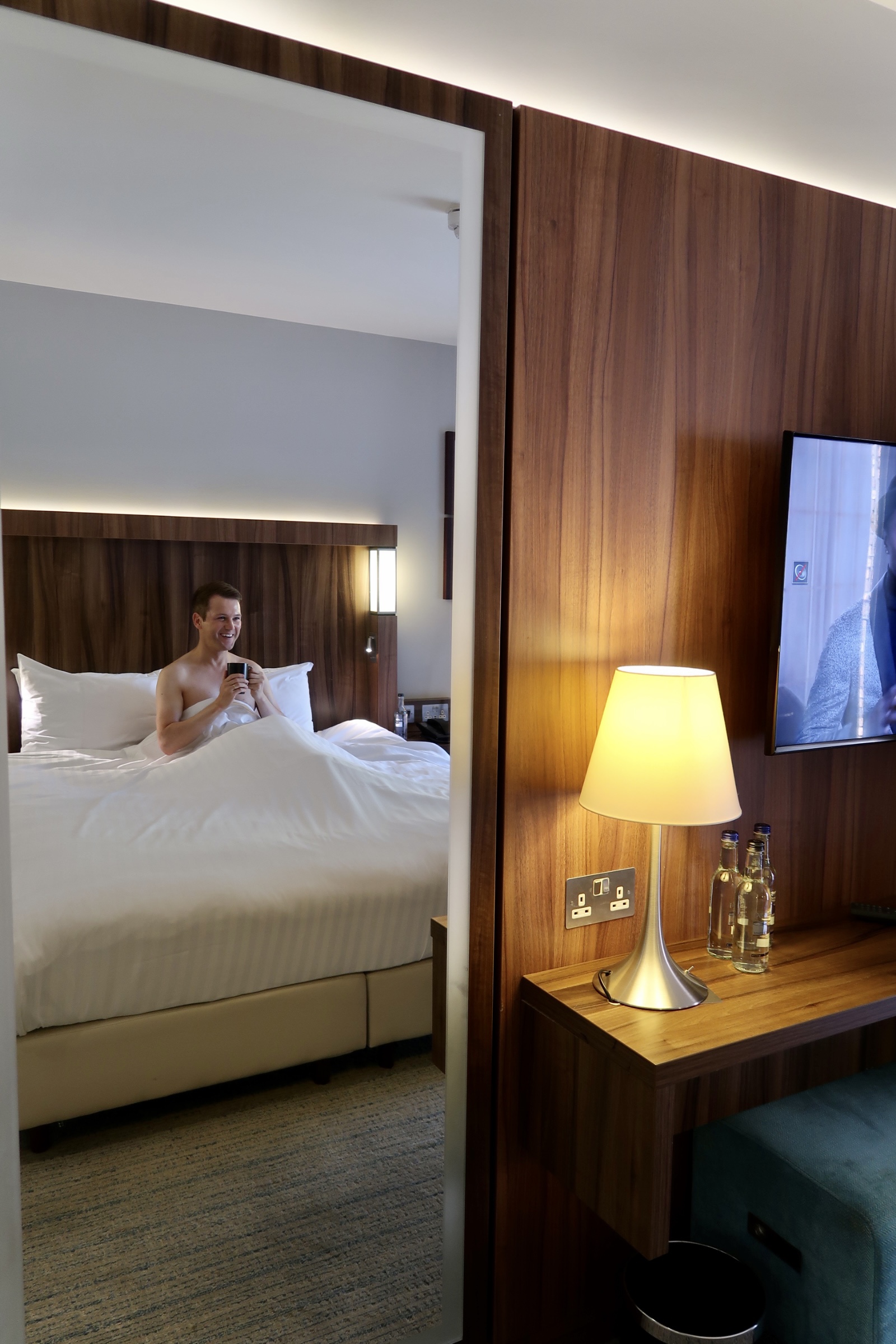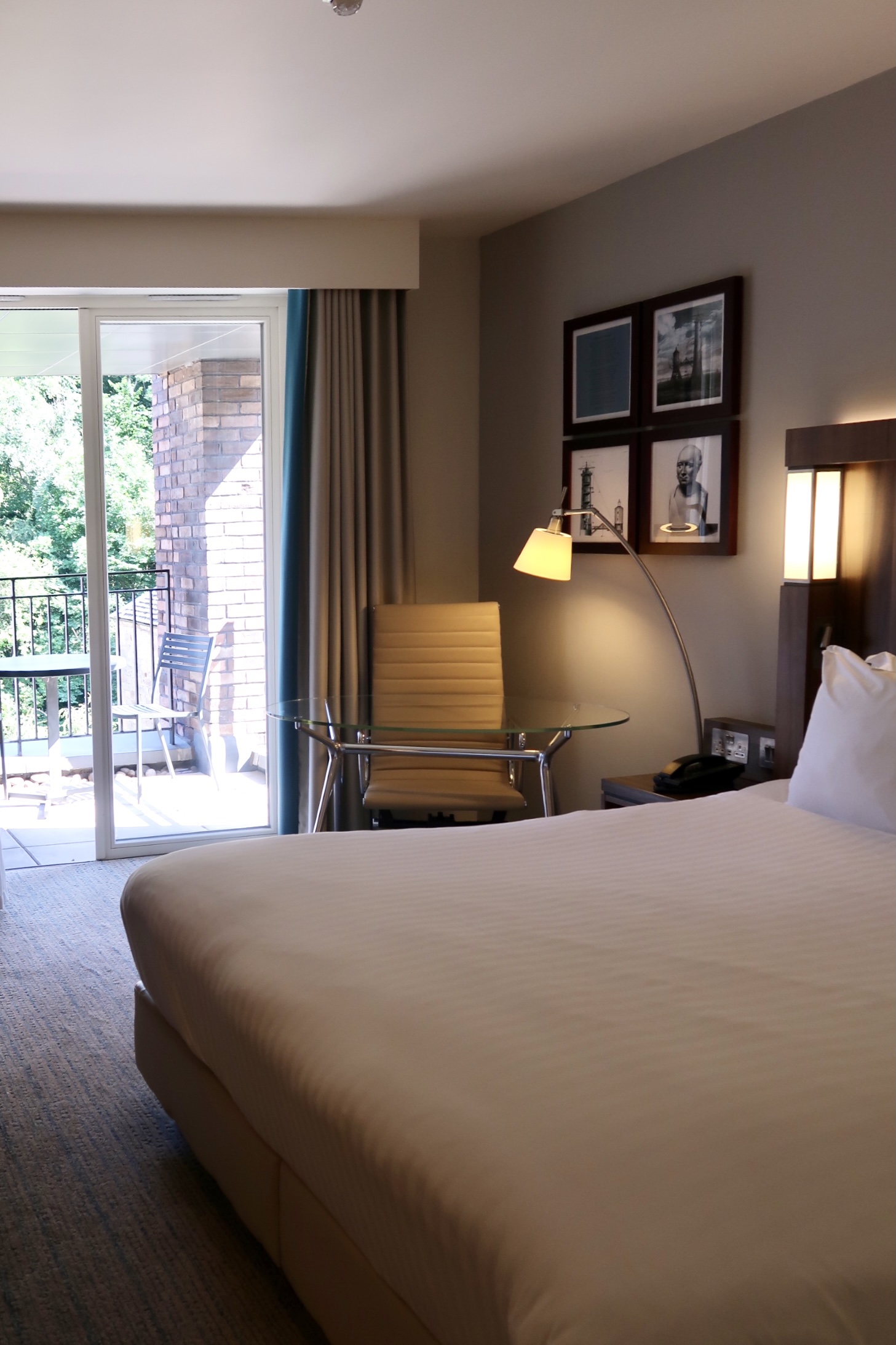 There are many different room categories such as; King Guest, Superior King, Queen Guest, Family Guest, Twin Guest, Accessible Guest and Superior King with Balcony. I was kindly offered the Superior King with Balcony which was a godsend considering Edinburgh was experiencing a very rare hot summers day. This outdoor space alone is a rare find in Edinburgh, so this made it one of the main highlights of the room. Situated towards the back of the hotel, the balcony overlooked some residential buildings as well a carpet of green foliage that cascaded down from the peak of Calton Hill. I enjoyed sitting outside with a glass of cold Prosecco and listening to the relaxing call of nature in the nearby trees, it almost didn’t feel as if you were in the city centre at all.