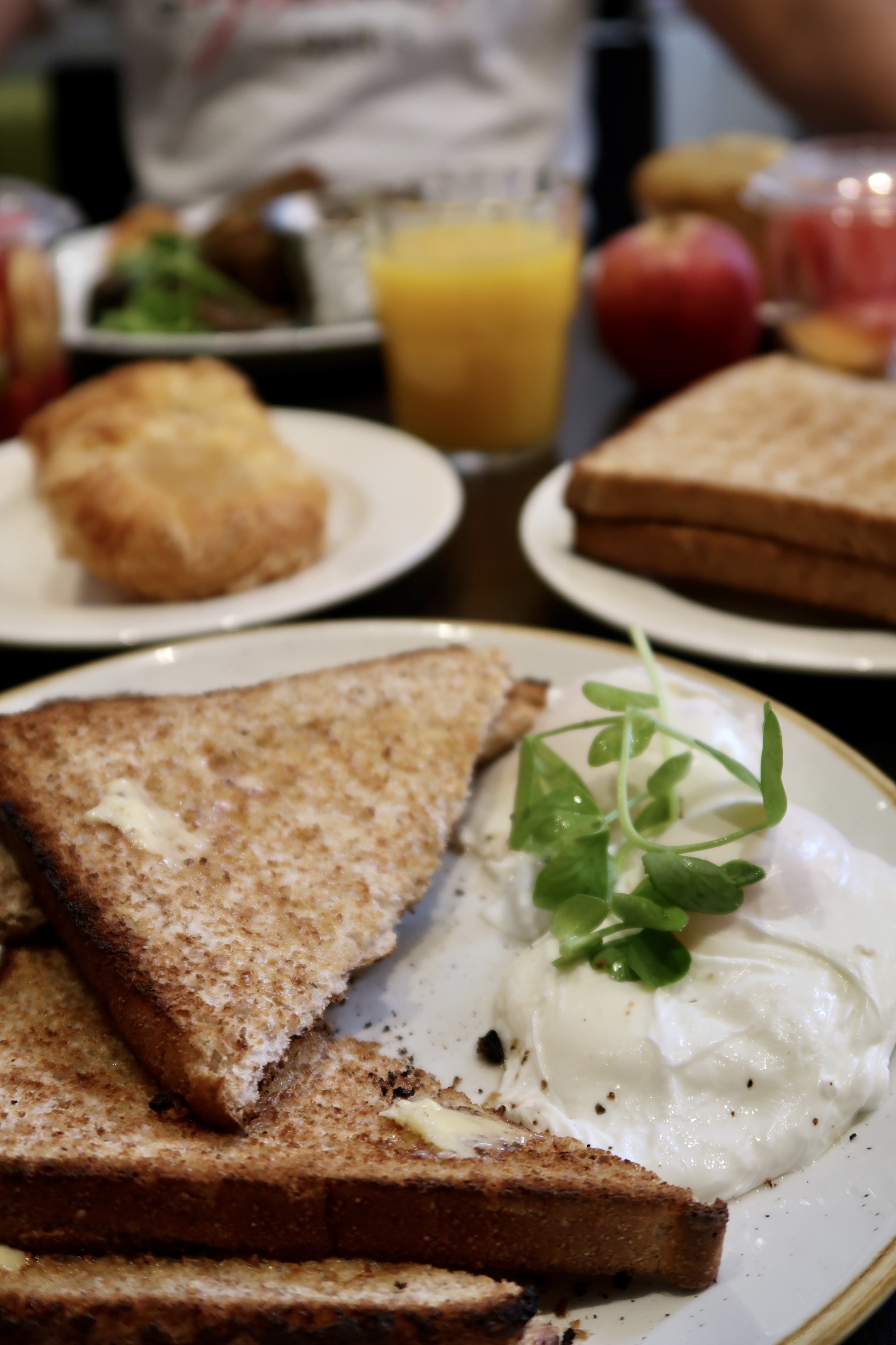 I must admit, I often find it difficult to drift asleep in hotel rooms but due to the location of the room at the rear of the property, the silence along with the comfortable bed left me suitably rested and ready for breakfast the next day. Breakfast was located on the lower ground floor of the hotel and operated a service combining self-service and waiter service. A range of cereals, yoghurts, fruit, pastries and hot drinks can be obtained from a very well organised self-service area and a choice of warm food is available to order. We opted for a vegetarian breakfast along with poached eggs and it was certainly a tasty and satisfying option.