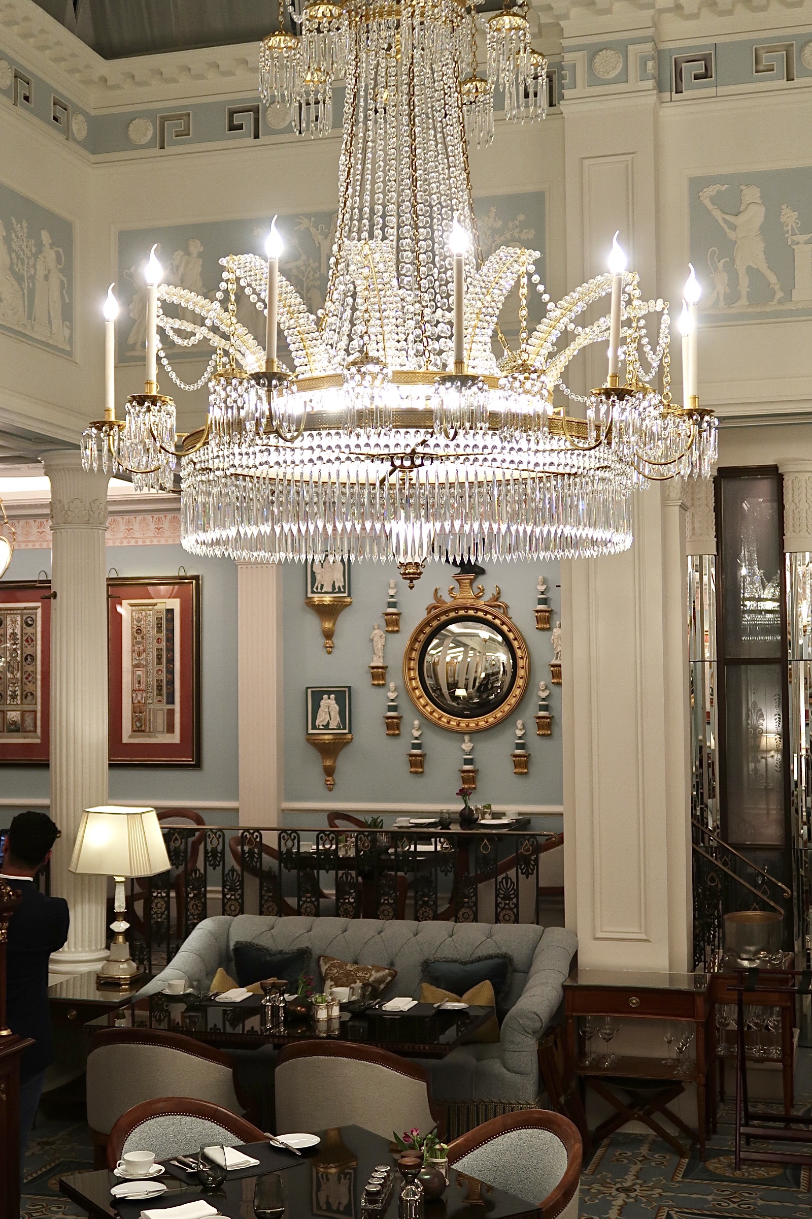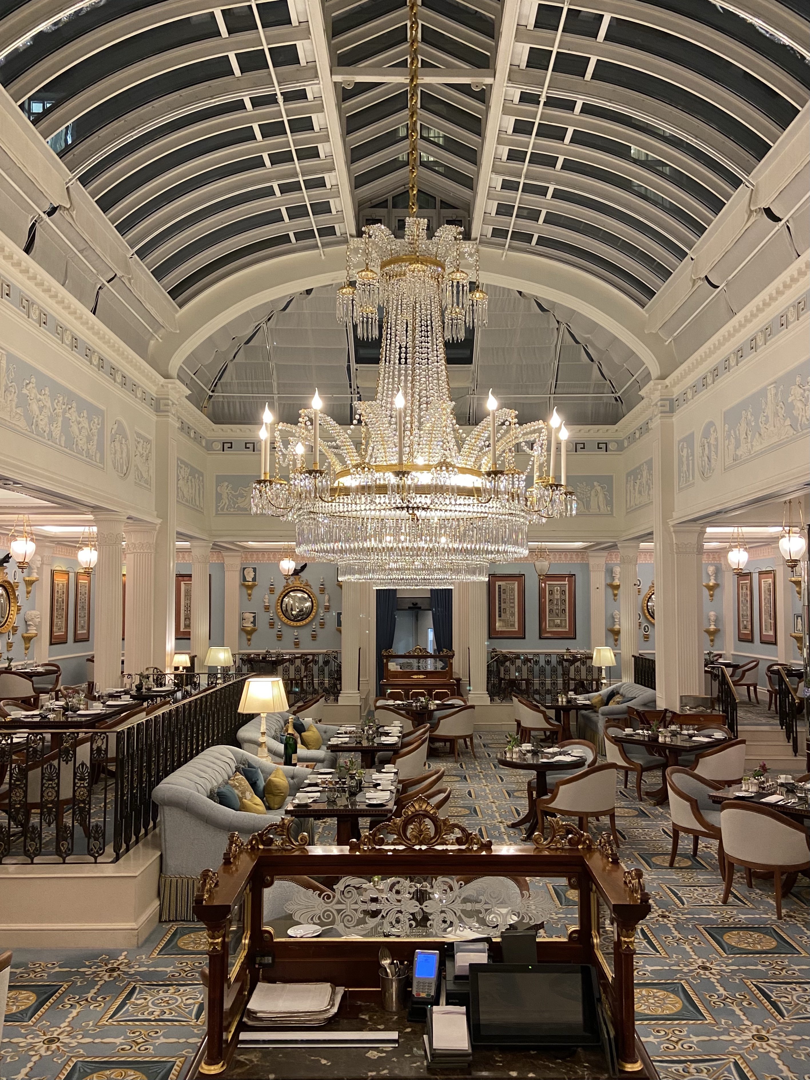 If you are longing for a marvellous evening of food and drink you don’t have to travel very far to experience this as the hotel has everything you could desire. Wandering through the expansive lobby, there are numerous areas where you can relax, enjoy a selection of culinary delights and experience a delicious cocktail. The hotel is a renowned premier London food and drink destination and a great place to begin an evening is at their Michelin starred restaurant Céleste. Its interior is simply breathtaking and although the space is expansive it still has the feel of an intimate restaurant. Head to my previous blog post to find out more about this exquisite dining experience.