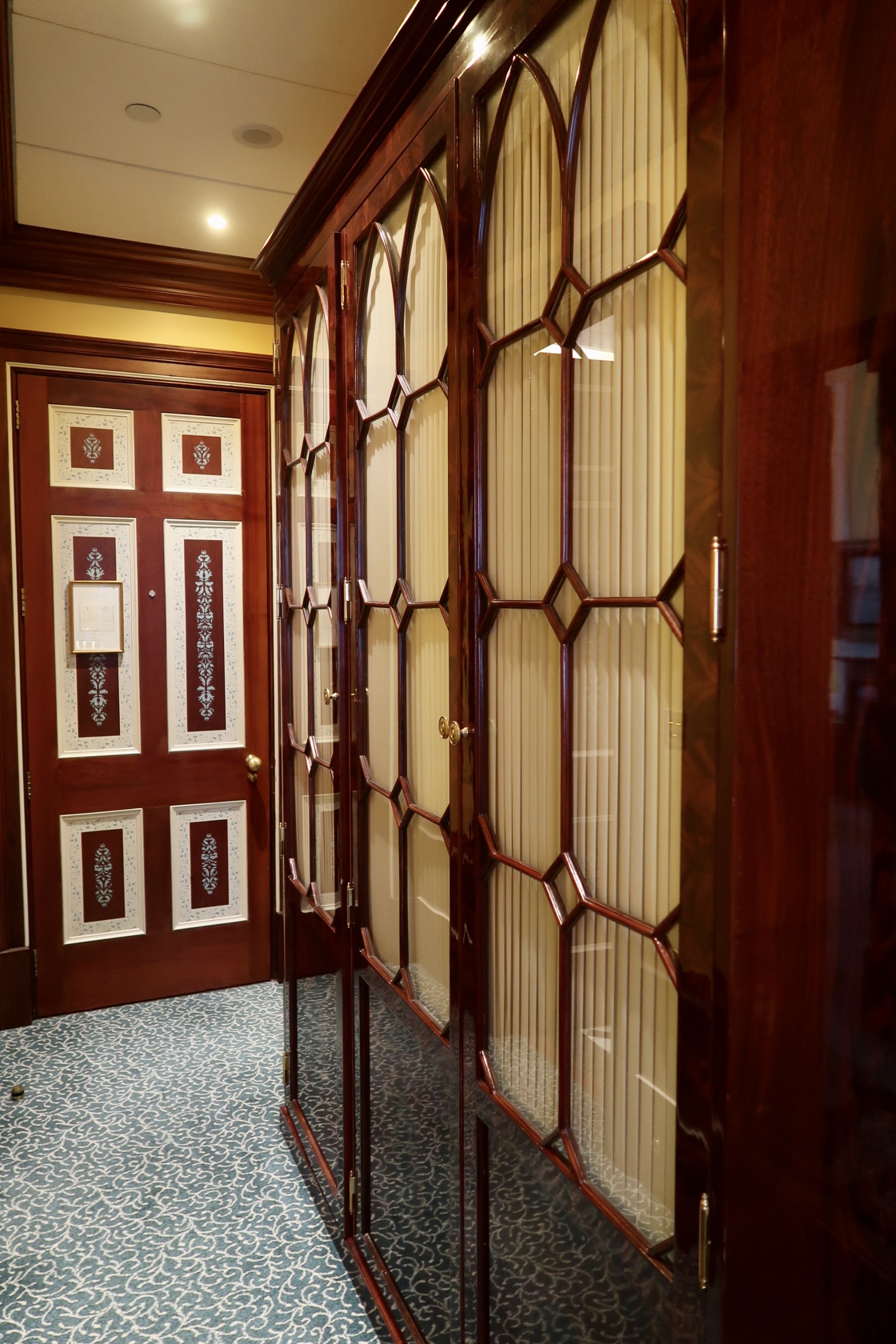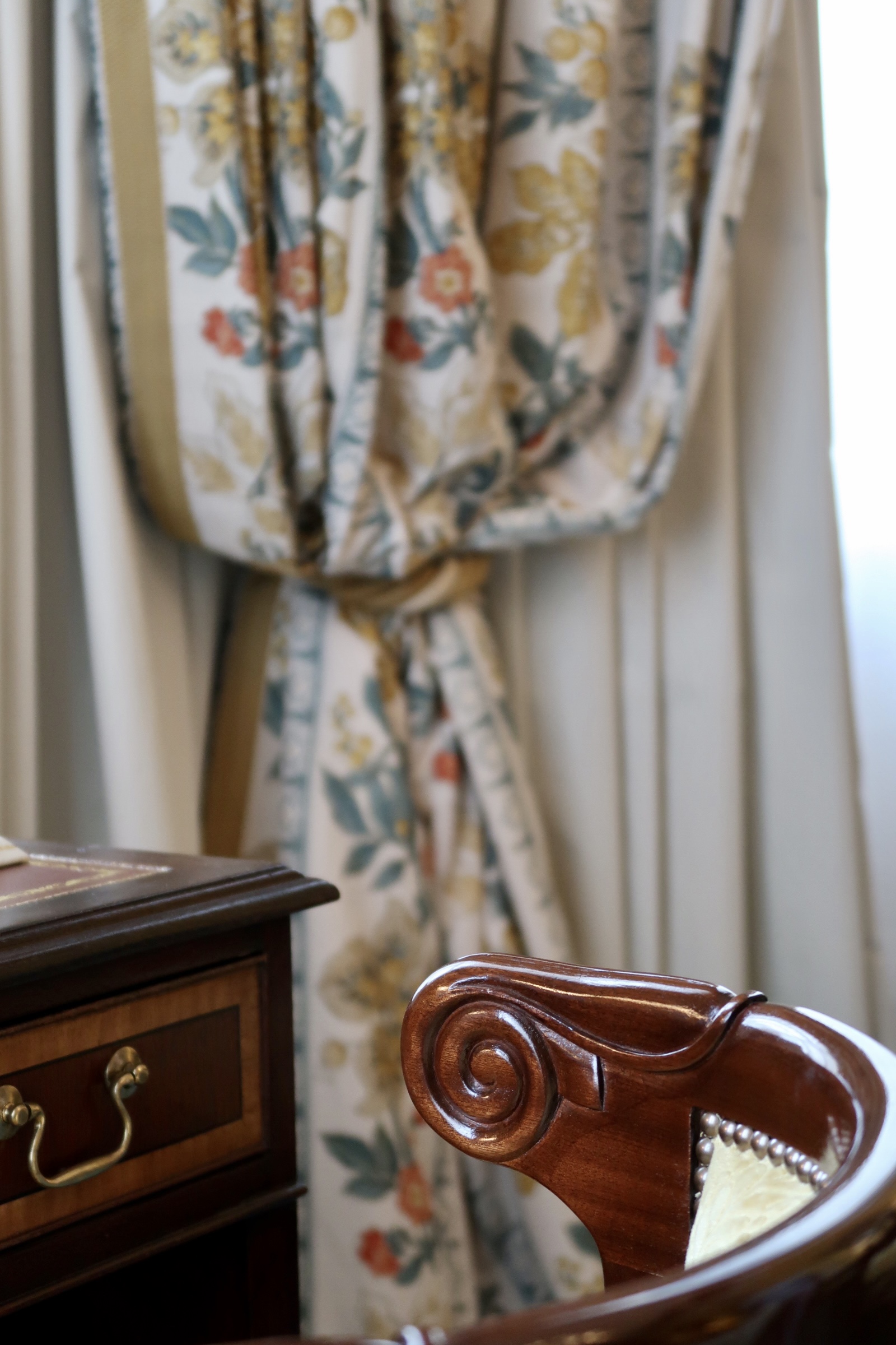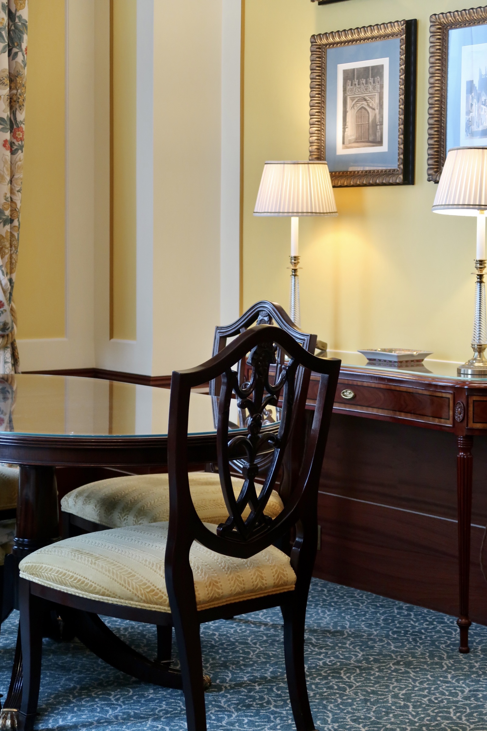 The Withdrawing Room was one of my favourites due to its classic and elegant style and it’s here you can experience a light lunch, afternoon tea or a relaxed drink. The room is decorated with hand-painted trompe l’oeil marbling and enhanced with a tonal palette of greys, greens, golds and yellows. The swathes of fabric on the window, the highly patterned flooring and the coloured scattered seating come together to create the most tranquil space that was simply a joy to sit in.