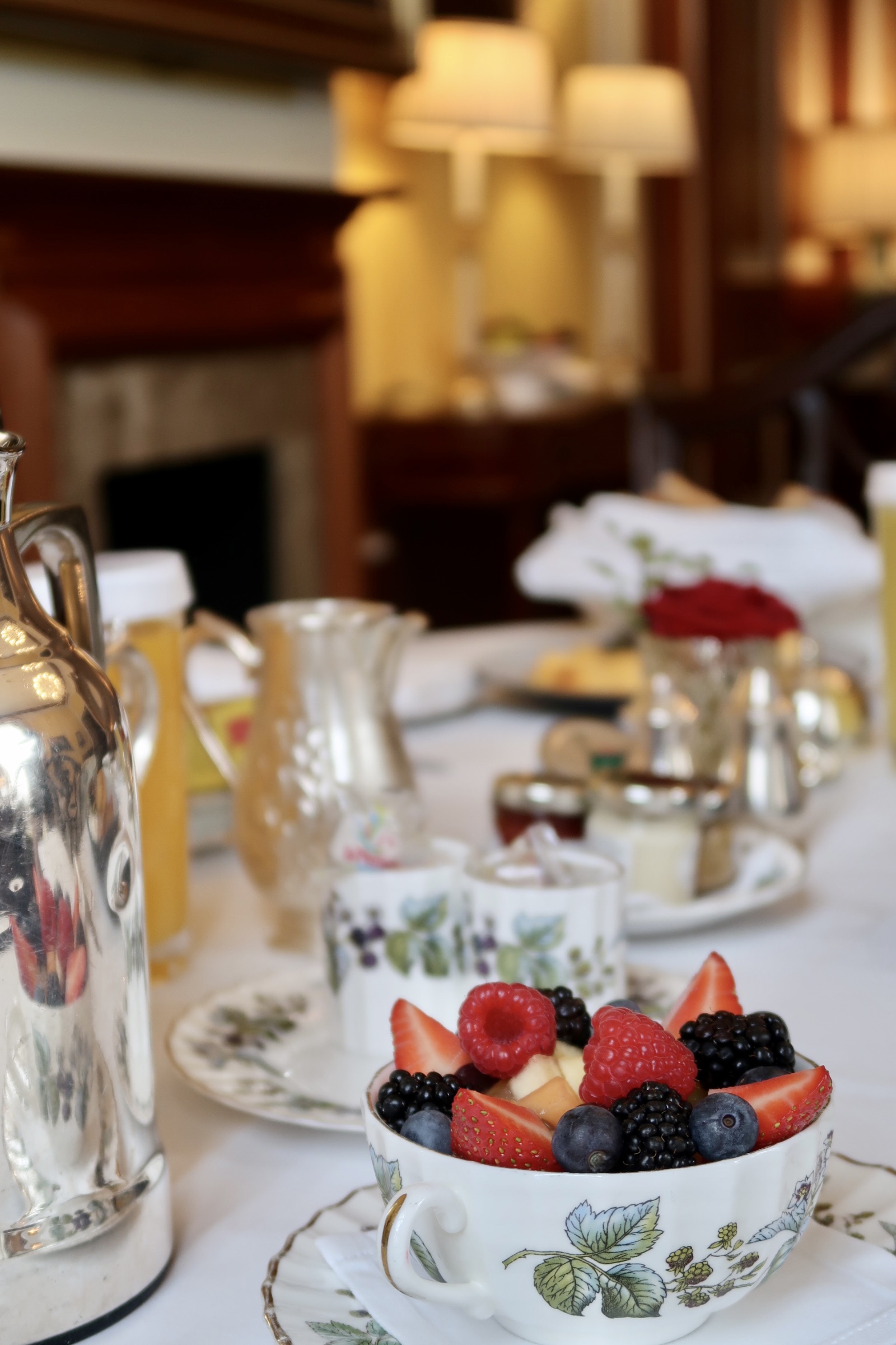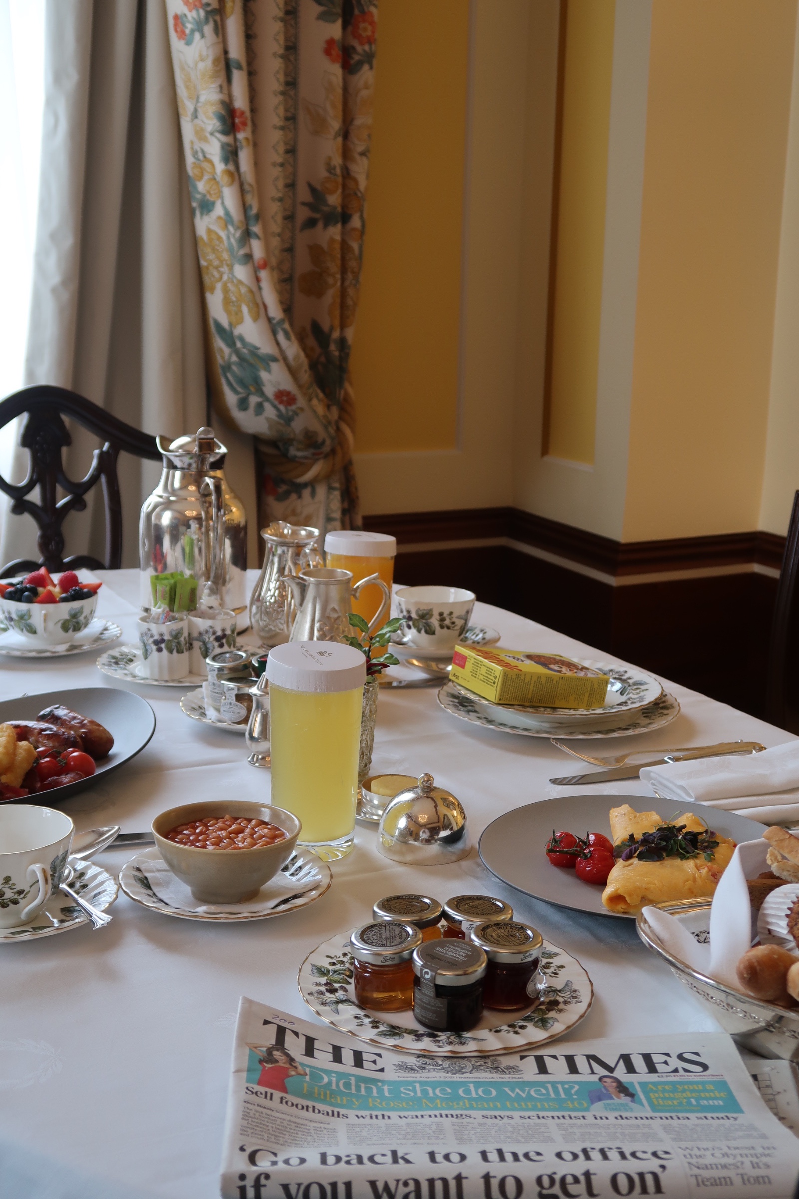 Although breakfast is available in the hotel’s restaurant, I opted to enjoy it in the comfort of my suite. An additional tablet located on the writing desk allows you to conveniently pre-order breakfast the night before and pick the desired time for when you would like the food to be delivered. I chose a selection of summer fruit, a full English breakfast and a basket of pastries along with coffee and fresh pineapple juice. The breakfast was exquisite and is one of the best in-room breakfasts I have experienced in a long while.