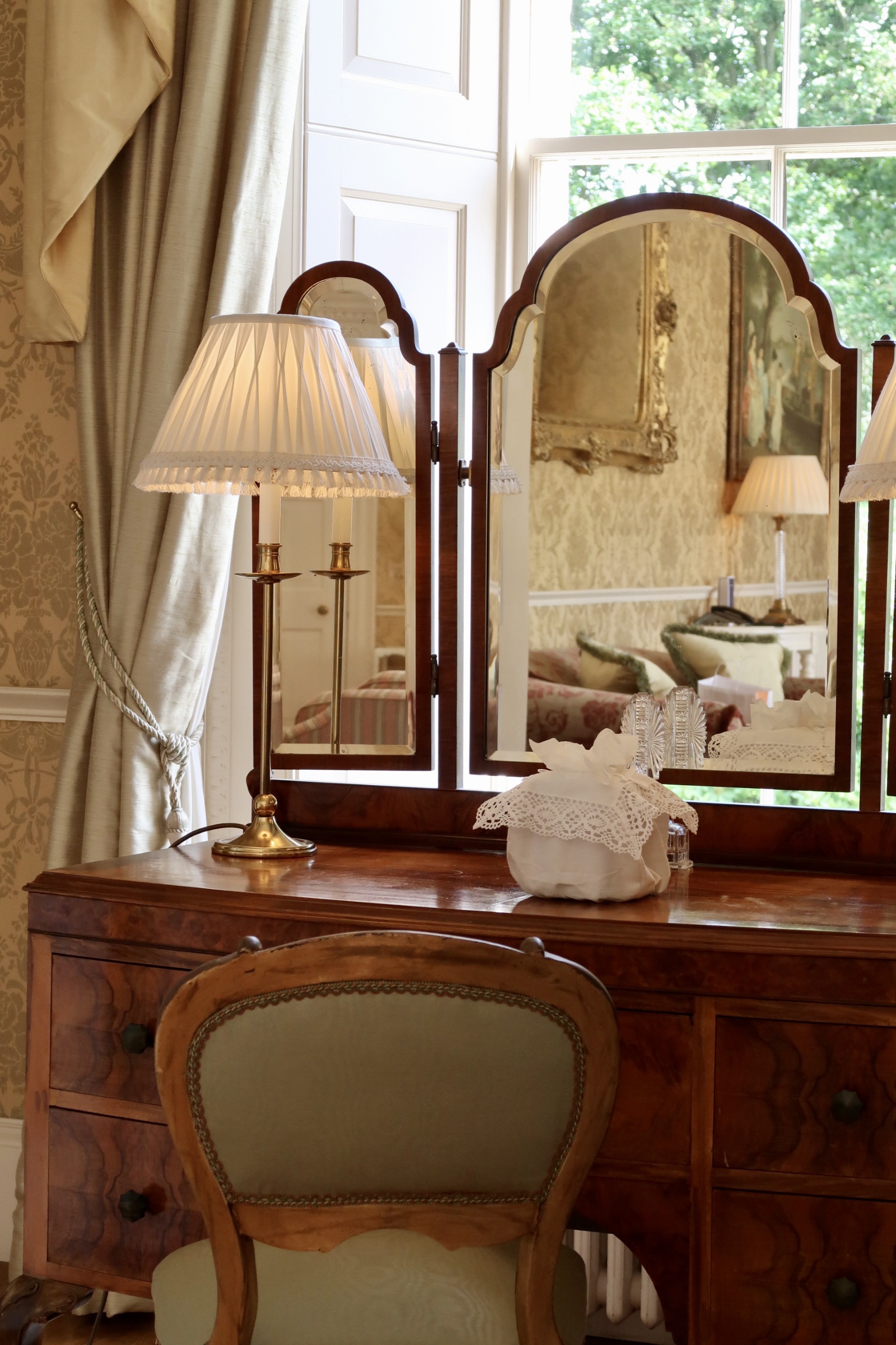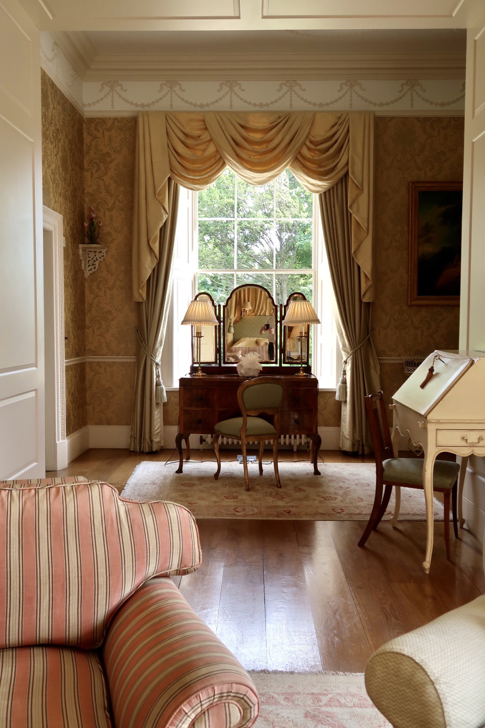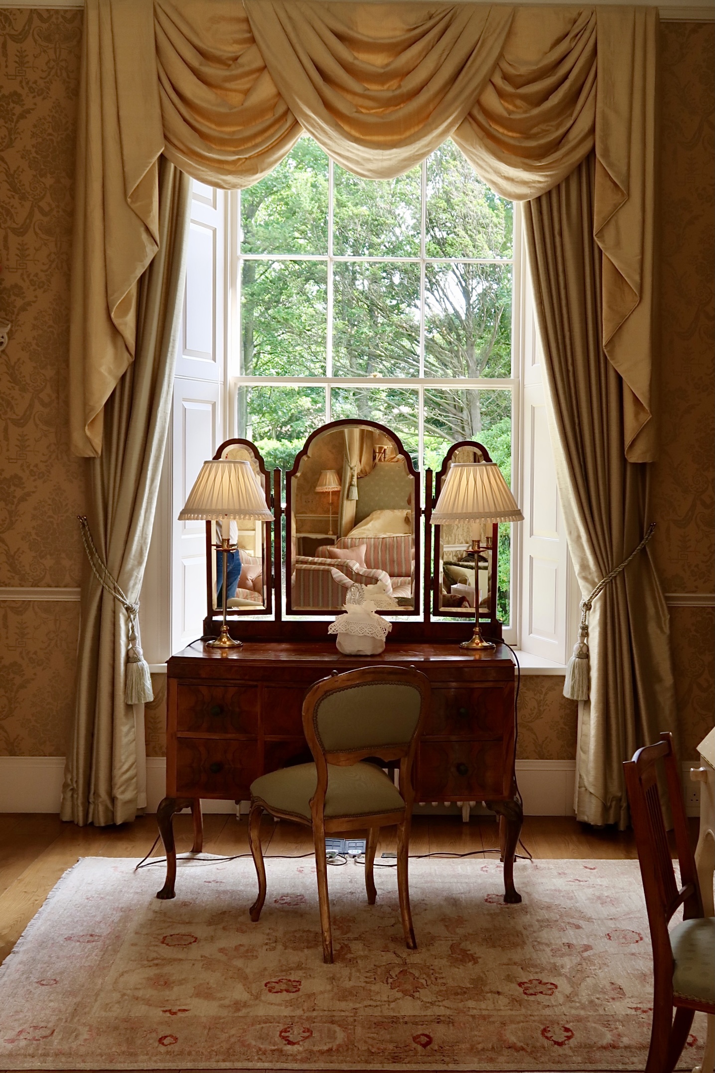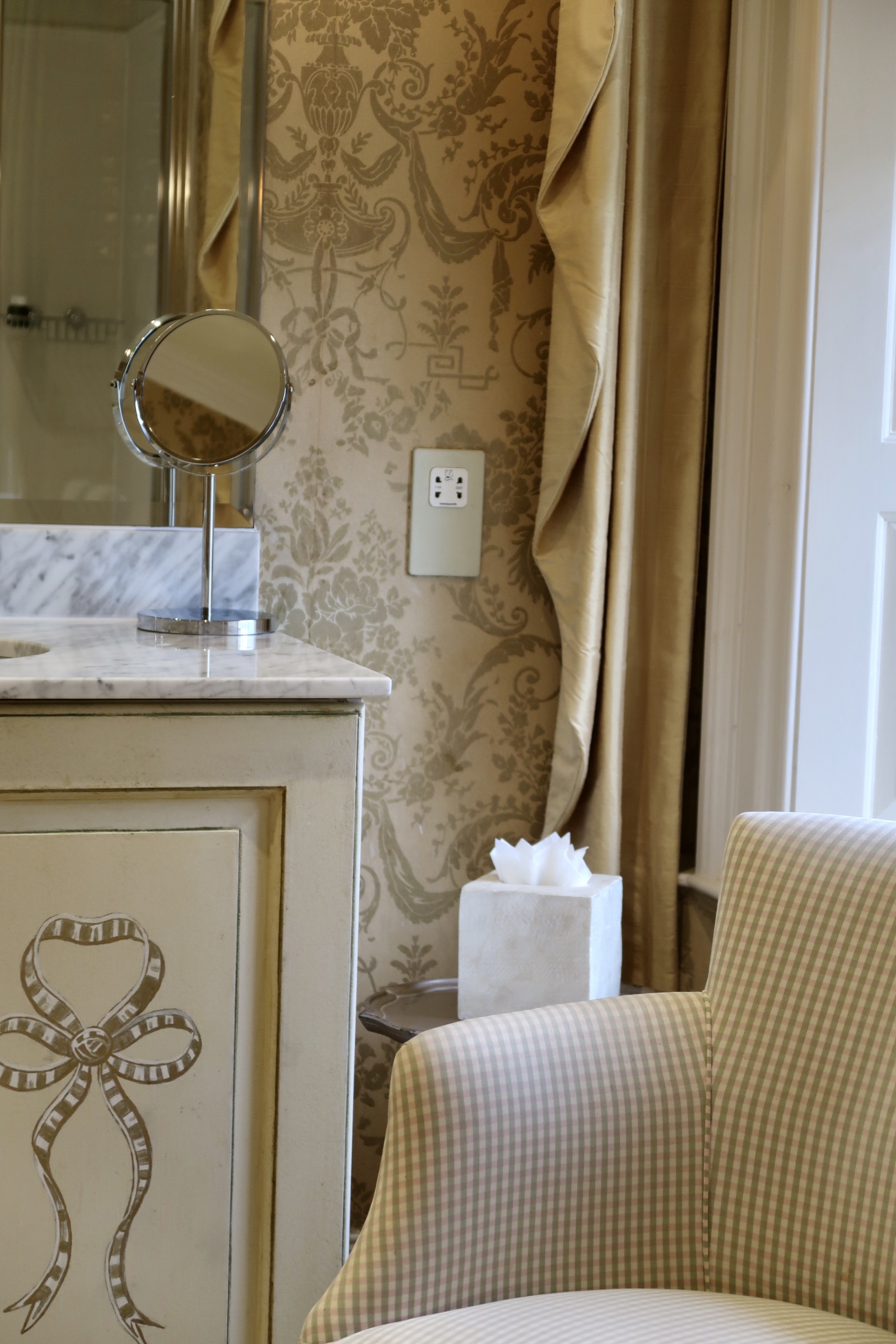At the rear of the room and slightly segregated was a beautifully appointed dressing area connecting to a large bathroom with a walk-in shower and separate bath. The refined dressing area included an antique dressing table, writing desk and large mirrored wardrobe. I must say I felt rather at home here, getting changed, spraying on my fragrance and enjoying the view towards the leafy outlook.