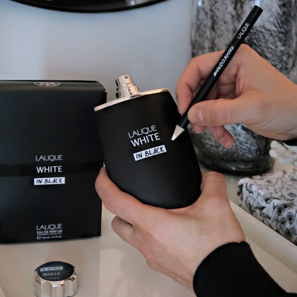 I must say until now I have mostly gravitated towards the interior design aspect of Lalique, but as I have developed into a fragrance aficionado, it has been such a reward to discover the captivating world of Lalique Parfums. Their current fragrance White in Black is geared towards a new generation “who’s not afraid to break the codes of classic masculinity”. It strays away from the intricately designed glass bottles of the past, housed in a slick matt black bottle and crowned with a solid silver cap. I particularly love the inclusion of white chalk included within the box, allowing the wearer to express their individuality by drawing or writing on the body of the bottle. This strong stand out design is sure to capture the attention of the contemporary man
