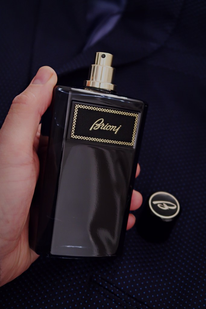 As an admirer of men’s tailoring and a wearer of blazers (hence the name BluBlazerGuy), I was very excited to try this latest release. In true Blu Blazer Guy fashion, my eyes lit up when I saw the fragrances distinguished blue packaging. The Italian glass bottle exudes the same shade of blue as the box and is cleverly shaped to emulate Brioni’s navy blue tailored suits. The front of the bottle is embellished with a satin label of black and gold, evocative of the ones that grace the inside of a Brioni Suit. Crowned with a black magnetic top and engraved with the fashion houses’ iconic B logo, it opens up to reveal an elegant gold atomiser adorned with the same symbol. I was initially concerned that the fragrance may exude the typical cologne-like nuances, which aren’t to my personal taste, however as soon as I experienced it I was tremendously impressed.