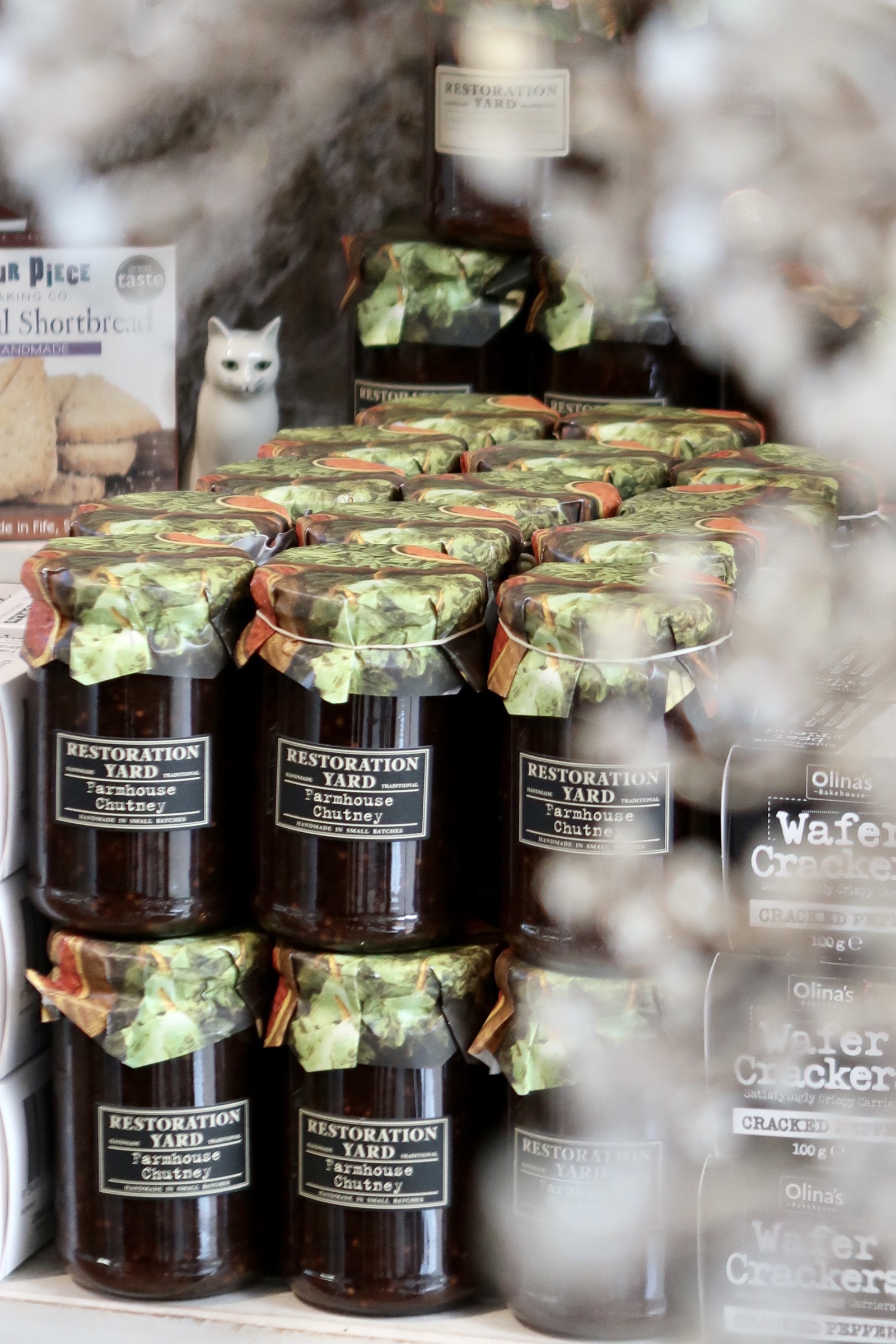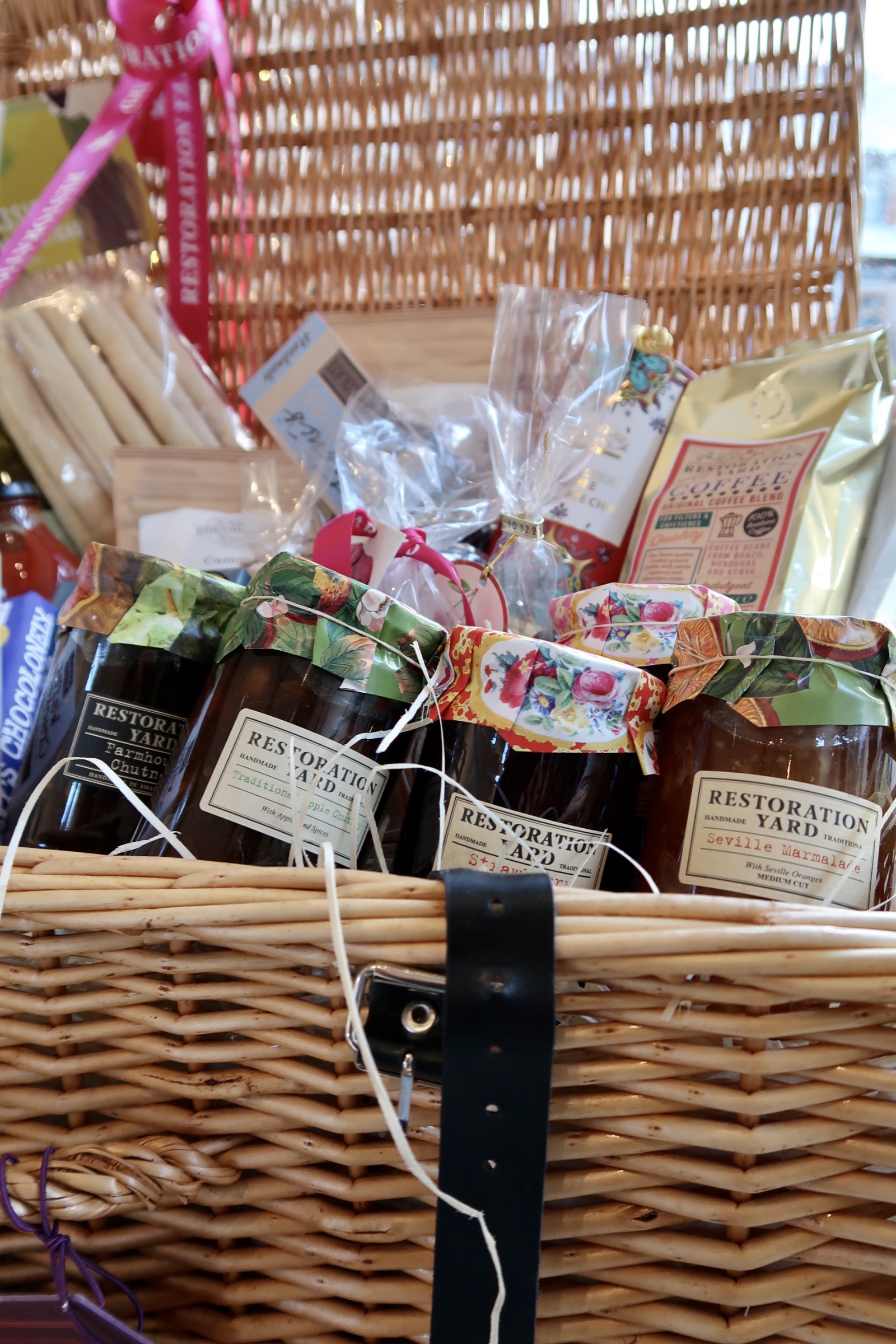 After perusing the enticing shelves (with stomach rumbling) my eyes zoned in to the Restoration Yards own range of jams, chutneys and marmalades. Conveniently, Restoration Yard has a selection of beautiful wicker baskets to choose from which are available to purchase, allowing you to roam around and fill the basket until your heart is content. If however you are limited in time, Restoration Yard take out all the hard work by providing a choice of pre-made hampers that are lovingly wrapped and ready to gift.