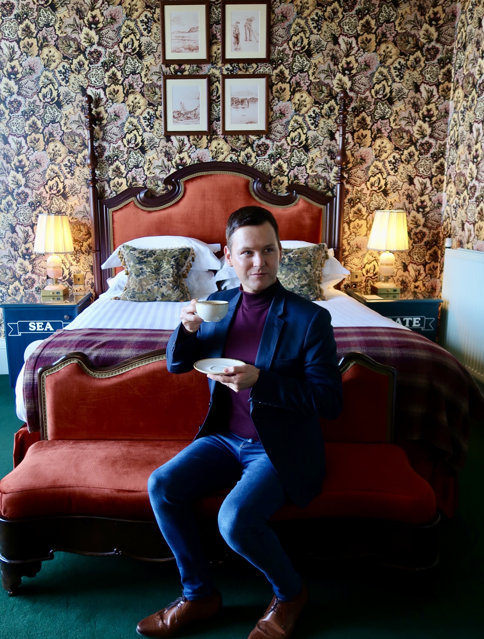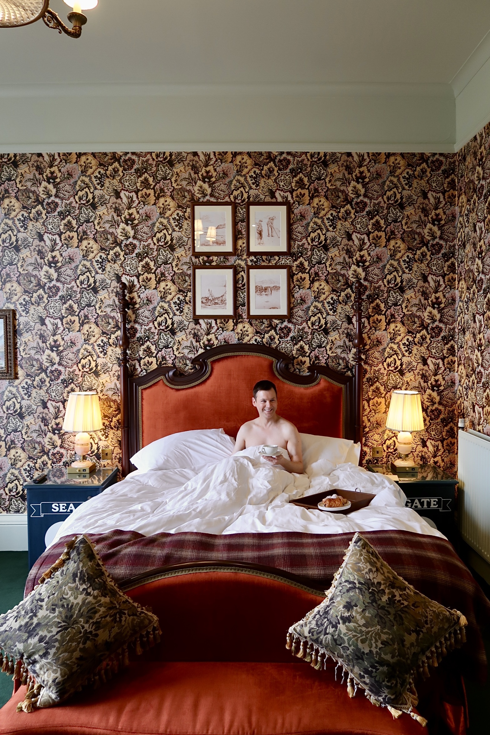 The Marine North Berwick has 84 rooms with differing categories. Some are located looking upon the tree-lined Cromwell Road or towards the sea and West Links golf course. I was staying in room 108, a Marine Deluxe King room situated on the ground floor of the hotel. Initially, I was a tad concerned that being located on the ground floor meant I wouldn’t be able to take advantage of those beautiful sea views, but as soon as I opened the door I wasn’t disappointed. Due to the room’s high ceilings, extensive windows and the hotel’s unique elevated position, the first thing you notice is the uninterrupted breathtaking outlook. After a refurb in 2021, the hotel went from beige to bougie and each of the rooms has had its unique injection of colour and style. I can only describe it as a cleverly balanced combination of Victorian influences, hues inspired from the surrounding landscape and hints of golf intertwined throughout.