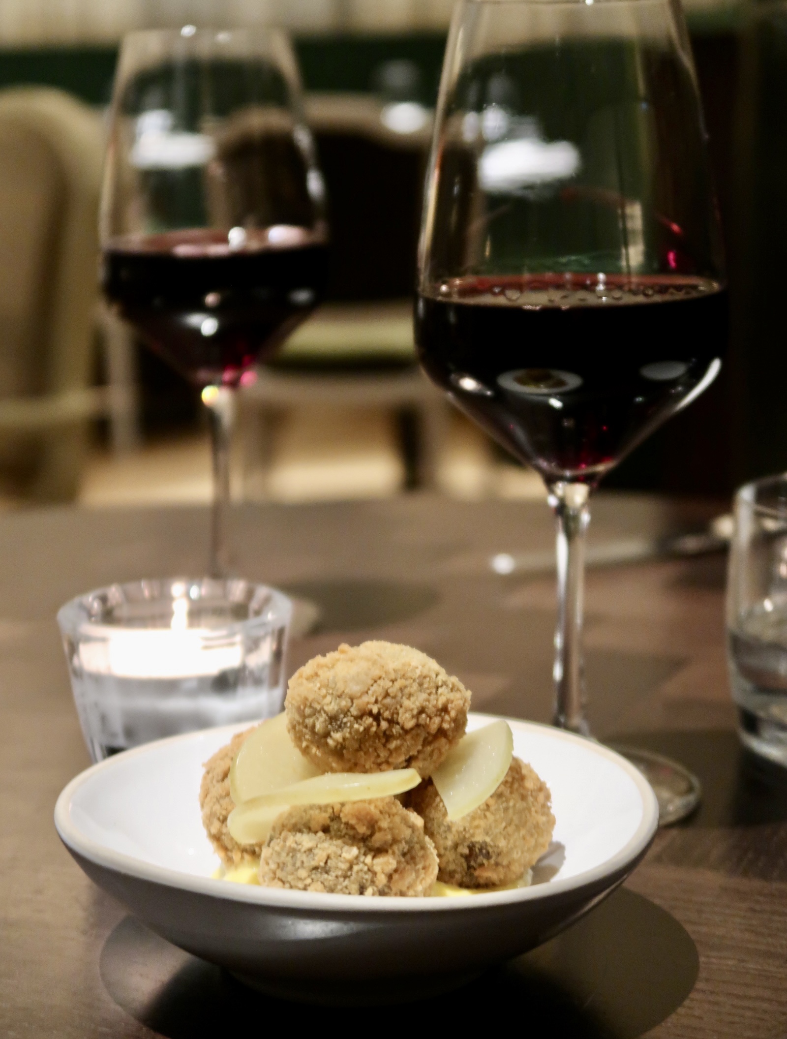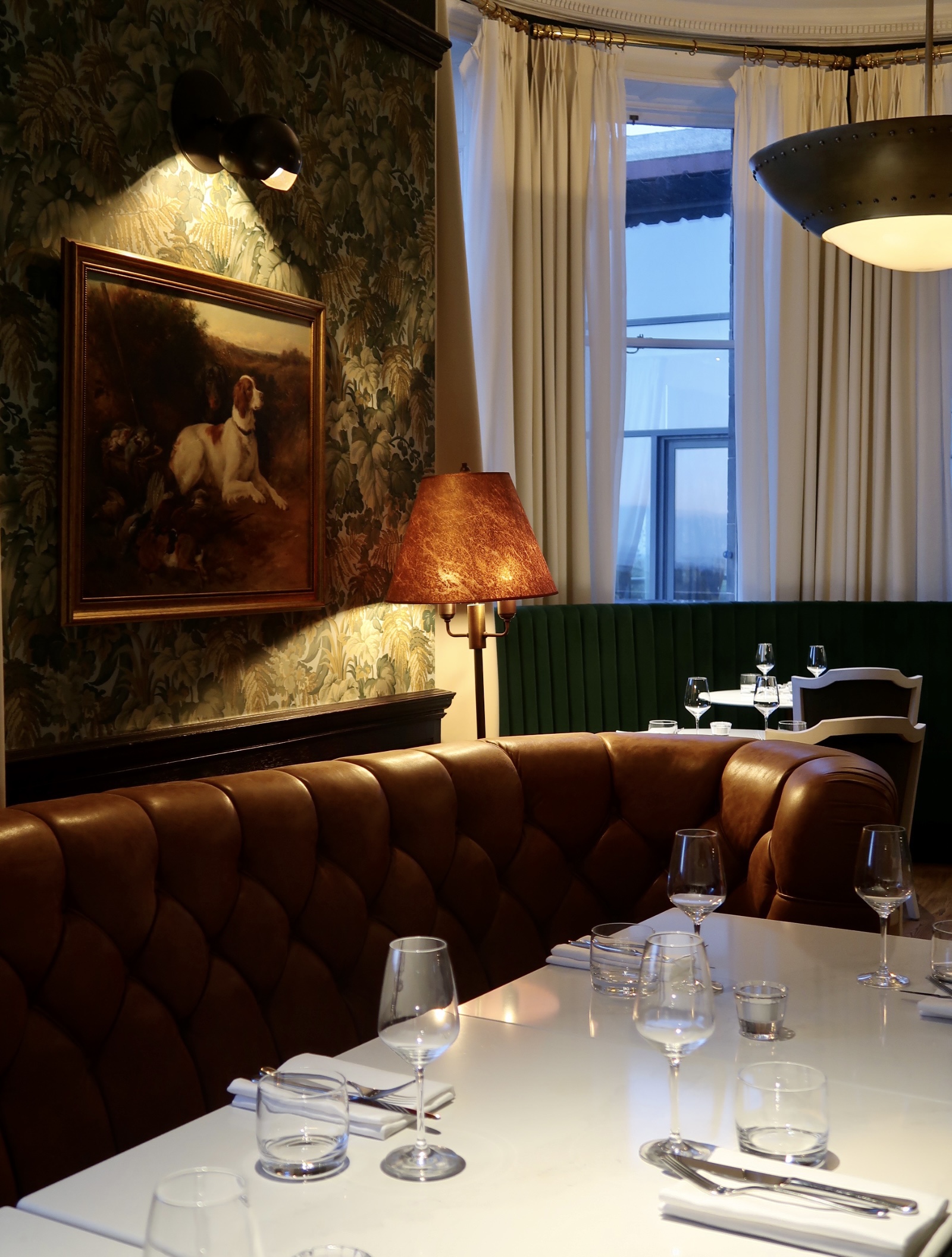 There is no shortage of food and beverage options to choose from and although North Berwick has an abundance of restaurants and pubs, I recommend dining in the hotel to enjoy their gastronomic experience at least once. After a quick cocktail in the subdued and sultry Bass Rock Bar, we headed to The Lawn, the hotel’s restaurant. Headed by award-winning chef Chris Niven, the menu showcases the very best of British and Scottish Cuisine. The interior decor echoes the rest of the hotel, its brasserie vibe accentuated with cosy lighting, leather studded seating and hues of greens and browns. I was especially enamoured with the array of artwork portraying different canine images, perhaps due to the hotel being very dog-friendly.