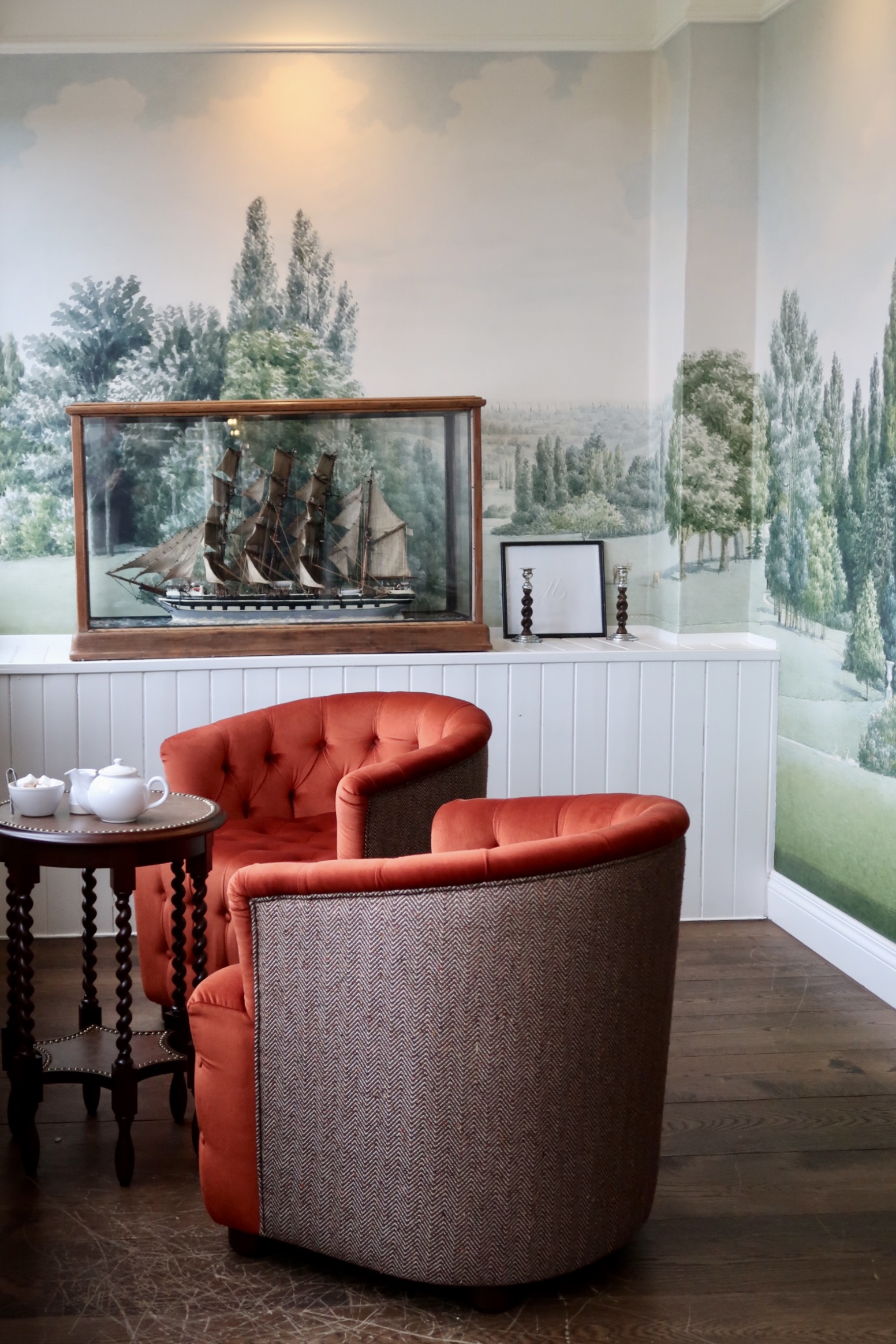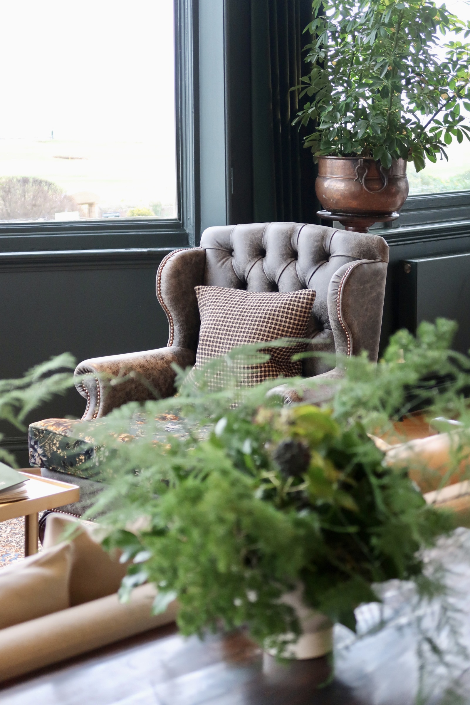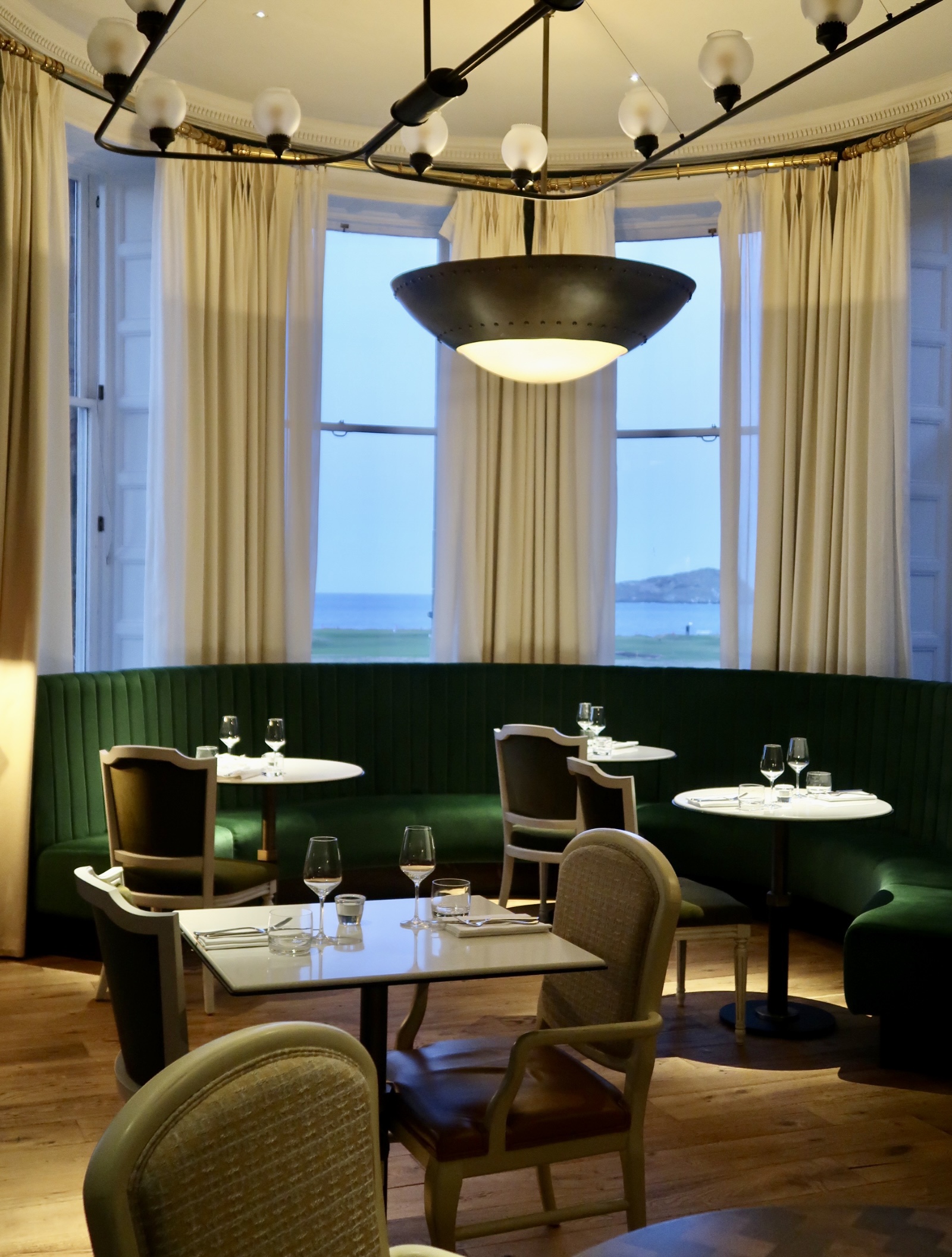 Arriving at the 19th Century property on a sunny winters day the pastel yellow and white exterior was pleasantly uplifting. If it wasn’t for those cold Scottish temperatures reminding me otherwise, I almost felt as if I was in some far-flung Mediterranean destination. Upon entering, it is immediately noticeable that Marine and Lawn have weaved their magic over the hotel, their unique classic style evident wherever you look. The reception and lounge area is a beautiful space, exuding a welcoming, cosy and comfortable vibe that provides an instantaneous sense of tranquillity. The reception desk cocooned in leather and trimmed with brass is something which I have never seen before, just one of the many things that make the design of this hotel stand out. Bookshelves, numerous trinkets and artwork inspired by the local area give the space a homely relaxed feel. Similar to Rusacks, the walls are embellished with wood panelling but this time the warm hues of walnut help to carry on those snug and encompassing vibes. I couldn’t help notice a myriad of guests enjoying a leisurely drink and admiring those all-embracing coastal views.