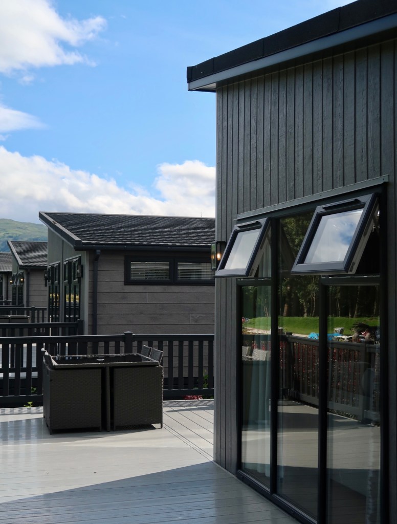 The exterior of the lodge was equally impressive with a considerable outdoor space that can be accessed by a separate secure entrance or via the large sliding doors in the lounge area. The decked area included plenty of outside space for each guest to enjoy including a dining table and the luxurious addition of a bubbling hot tub. The hot tub was perfectly positioned to take in those majestic views of Ben Nevis whilst sipping on a glass of champagne. It was the ideal place to relax those aching muscles after a full day of sightseeing. I especially appreciated the provision of a range of plastic glasses and separate blue towels specifically for use whilst utilising the hot tub. For those hygiene enthusiasts out there like myself, the hot tub is checked daily by the onsite team during your stay and cleaned after every visit.