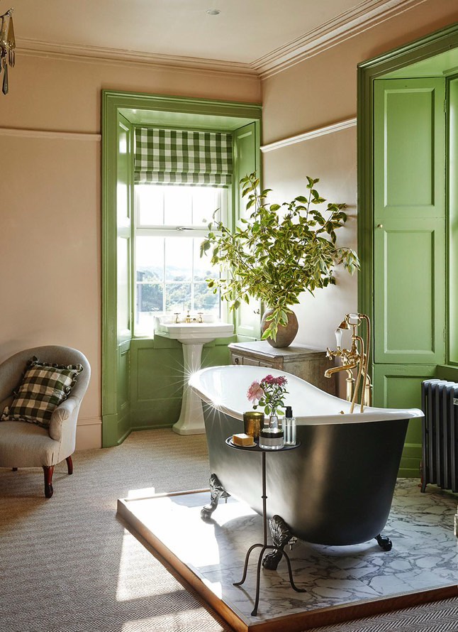 Upstairs, the seagrass carpet leads to two beautifully appointed bedrooms. The main bedroom is exquisite and surprisingly spacious. Cosy cream walls are accented by stunning green-trimmed windows and doors, bringing hints of the outdoors inside. The pièce de résistance is the rolltop bath, perfectly positioned to let you soak while enjoying the countryside views. Although the room felt slightly chilly in the evening, the cosy bed draped in linens kept us snug, and we had the best sleep.
