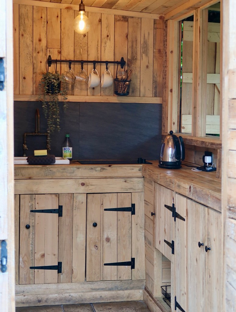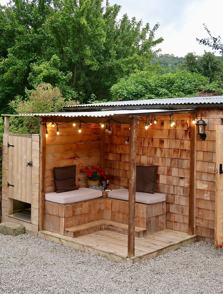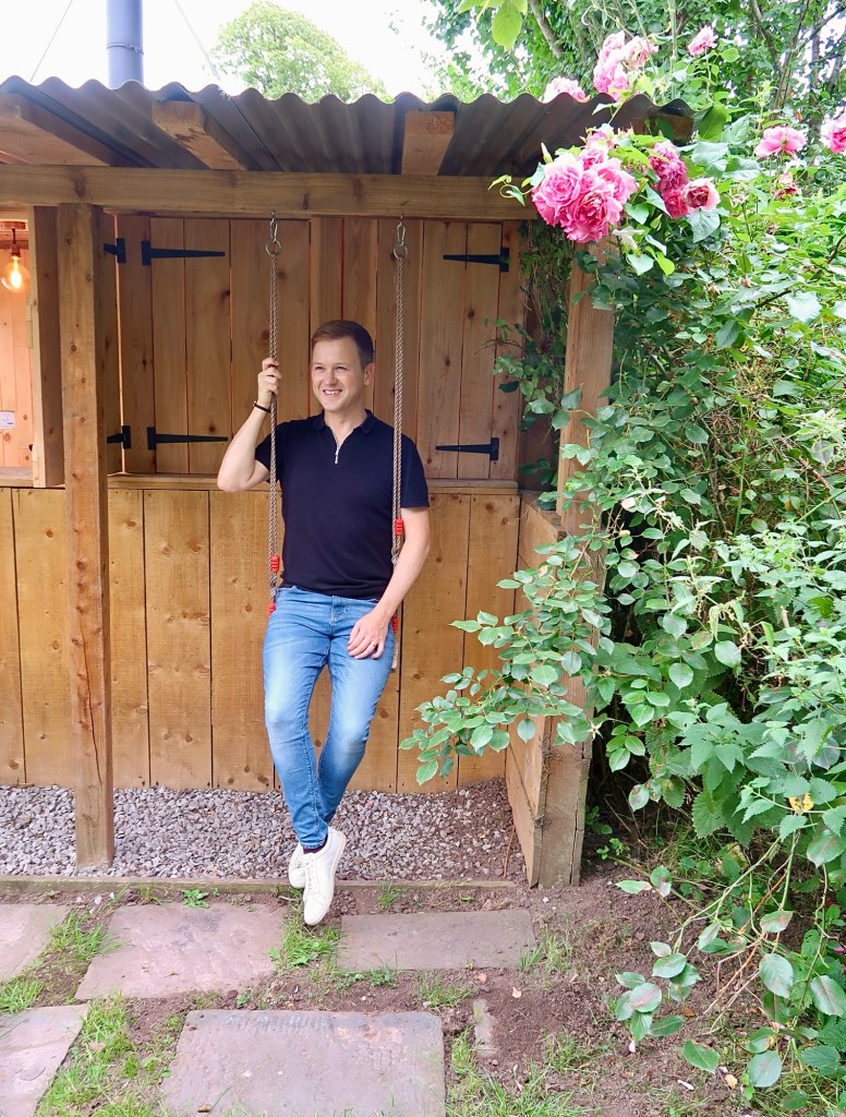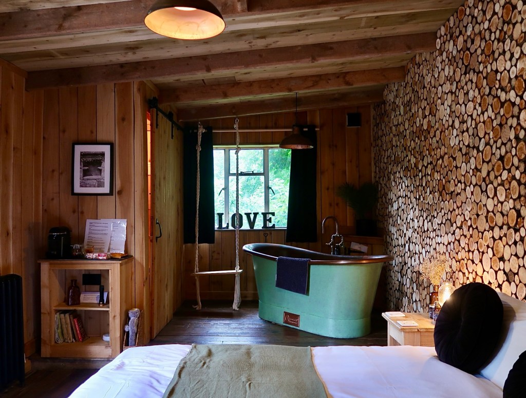 The adjacent kitchen is well-equipped with a hob, fridge, cutlery, and everything you might need. I especially loved opening the wooden hatches to take in the view of flowers and trees, with swings hanging just to the side. It’s a peaceful spot to relax and enjoy the calm (and perhaps a treat of Welsh cakes). There’s a covered outdoor space for when the Welsh weather turns (as it sometimes does), but we spent our evenings by the rose garden’s fire pit, roasting marshmallows as the sun dipped below the horizon.