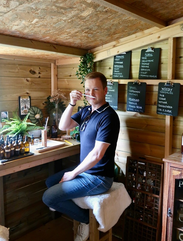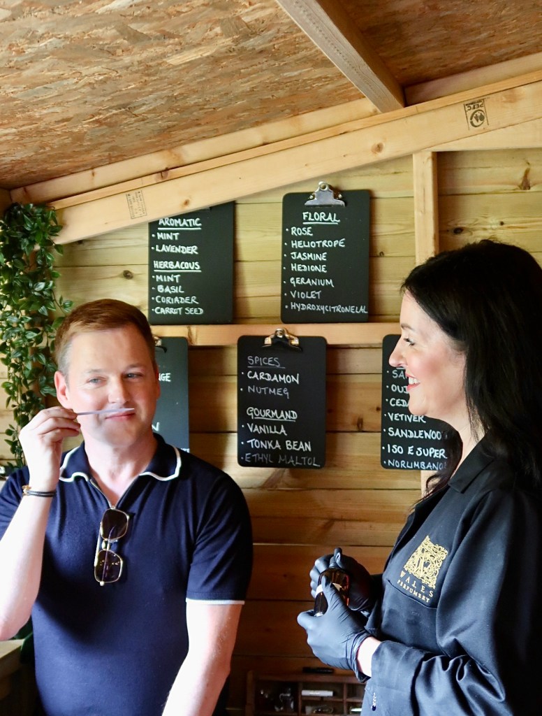 Now, let’s talk about the scent-filled centrepiece of the trip: the Wales Perfumery workshop. Louise, founder of Wales’ first perfumery, is a wealth of knowledge. Trained in France, she created her brand to celebrate the beauty and heritage of the Welsh landscape, and you can feel that in every blend.