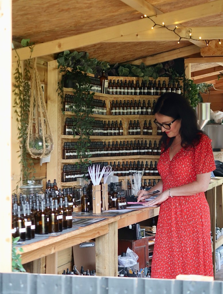 After first discovering the brand at Barnes Fragrance Fair, I knew I had to make the trip to explore more. From the moment you step onto the grounds of this 500-year-old walled garden, fragrance greets you with the scent of fallen apples from the trees — pops of red, sweet and vibrant, scattered across the grass. Small signs displaying perfume notes guide you gently along a scented path through a canopy of trees, leading down to the cabins.