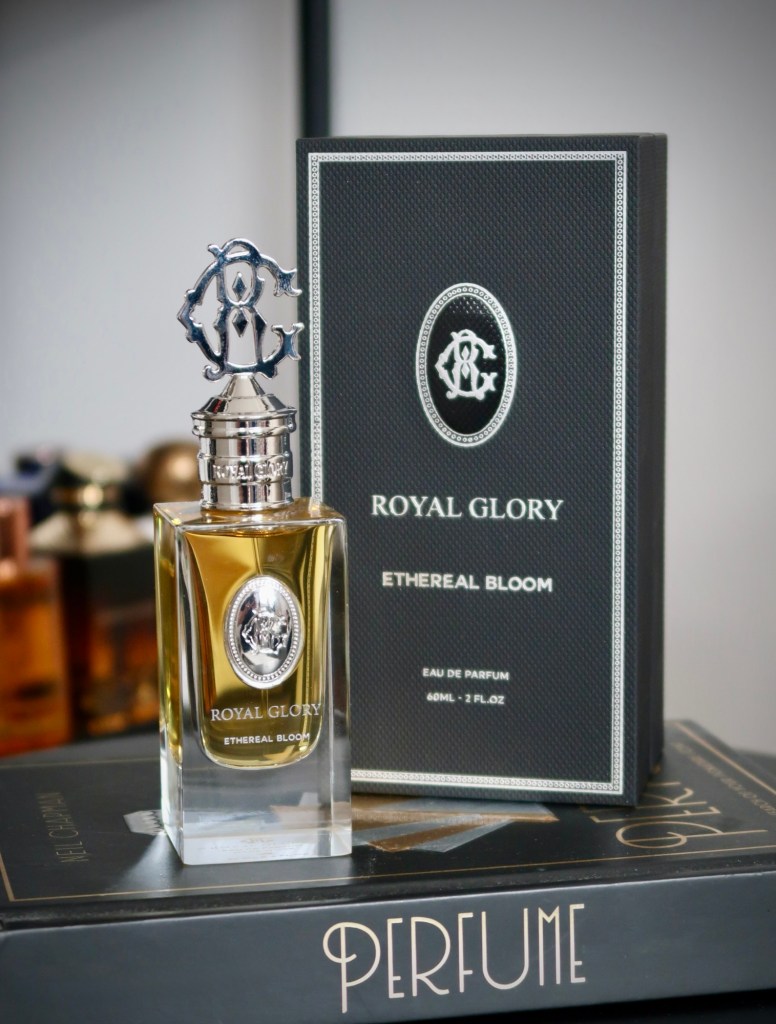 Being somewhat of a fragrant magpie, what also enchanted me about Royal Glory was its striking presentation. It is here that the luxurious experience truly begins, as you unveil the vessel within its elegant black box. The heavy-based bottle is sturdy yet sophisticated, embellished with gold writing and a plaque, along with a distinctive metallic cap shaped in the initials of the brand that adds a unique quality to the design. The overall aesthetic blends timeless elegance with a contemporary edge, immediately setting the tone for the olfactory journey within.